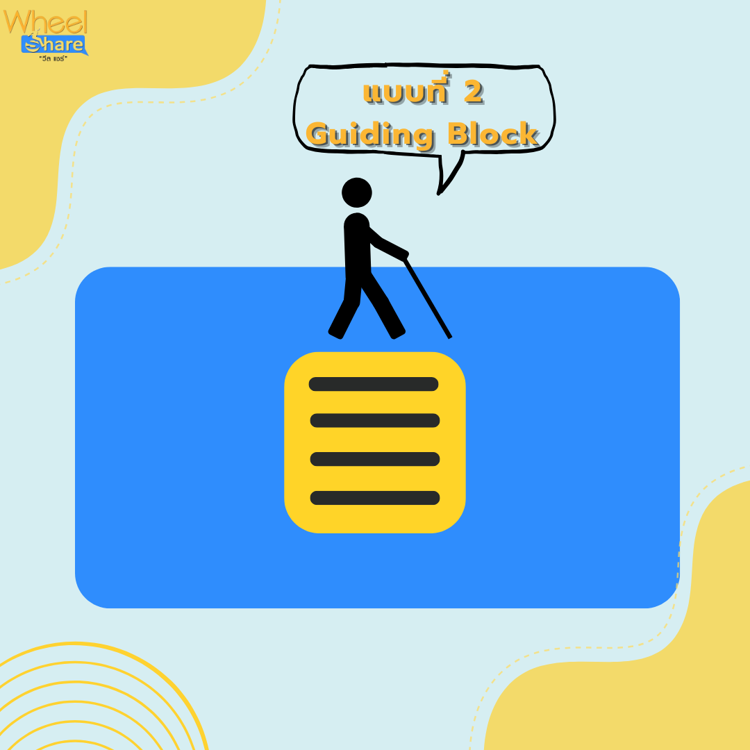 รูปแบบที่ 2 พื้นผิวต่างสัมผัสที่บ่งบอกทิศทาง (Guiding Block) มีลักษณะลายพื้นนูนต่ำเป็นเส้นตรงขนานกัน ชี้ไปตามเส้นทางสัญจรบนพื้นผิวต่างสัมผัส