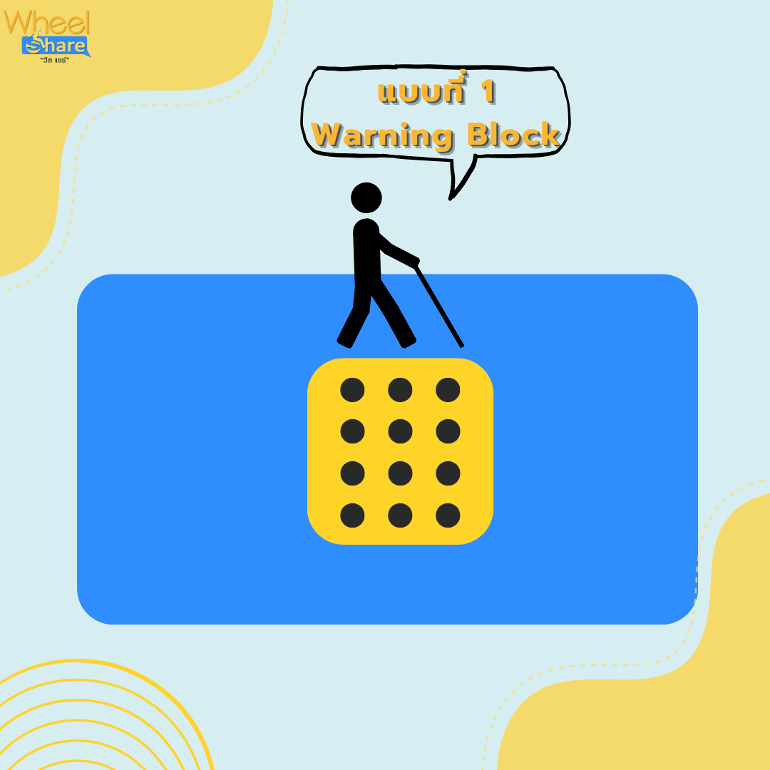 รูปแบบที่ 1 พื้นผิวต่างสัมผัสเตือน (Warning Block) มีลักษณะเป็นปุ่มวงกลมนูนต่ําจัดเรียงเป็นแถวเต็มพื้นที่สี่เหลี่ยมจัตุรัสของพื้นผิวเพื่อเตือนให้ระวัง เช่น บริเวณเริ่มและสิ้นสุดบันได บริเวณที่ประตูเปิดและทางข้าม