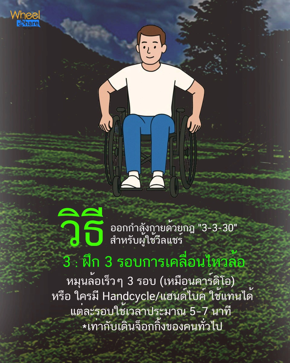 ซึ่งในกรณีนี้แอดปรับเปลี่ยนกฎ 3-3-30 ที่เหมาะกับผู้ใช้ "วีลแชร์" มาลองให้ชาว #WheelMyFan นำไปทำตามกัน เพราะแอดหวังว่าการมีร่างกายที่แข็งแรงจะช่วยเพิ่มความสดใส ทำให้ร่างกายแข็งแรง และลดโรคลดความเครียดไปได้ในท้ายที่สุด มาลองทำไปพร้อมๆ กันกับแอดนะ