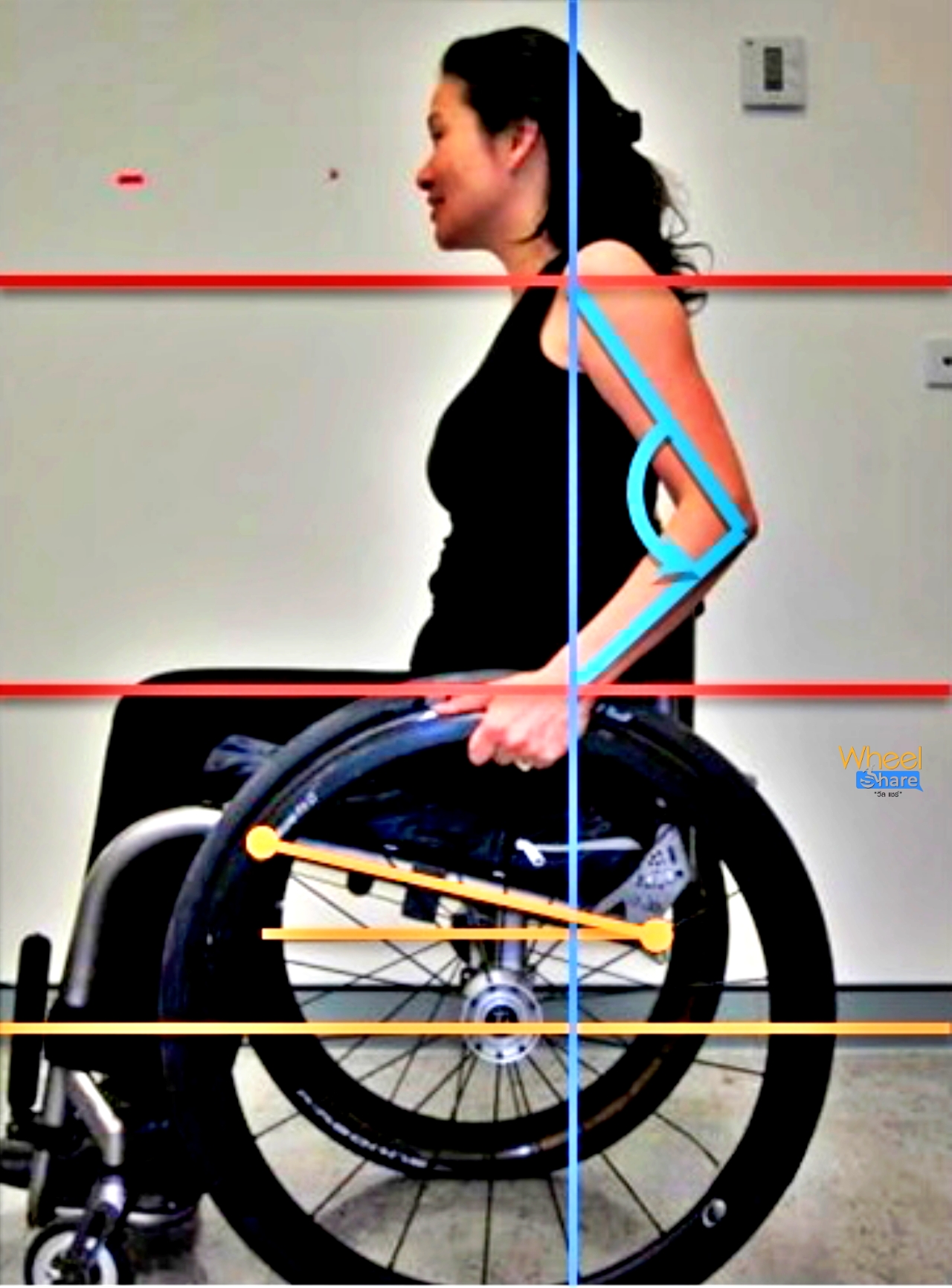 ถ้าล้ออยู่ สูงเกินไป → ผู้ใช้ต้องยกไหล่/งอข้อศอกมากเกินไป → เสี่ยงต่อเอ็นไหล่ , rotatorcuff tear , impingement (การกดทับของเอ็น) → การขึ้น-ลงรถเข็นอาจยากขึ้นเพราะเบาะสูงขึ้น.