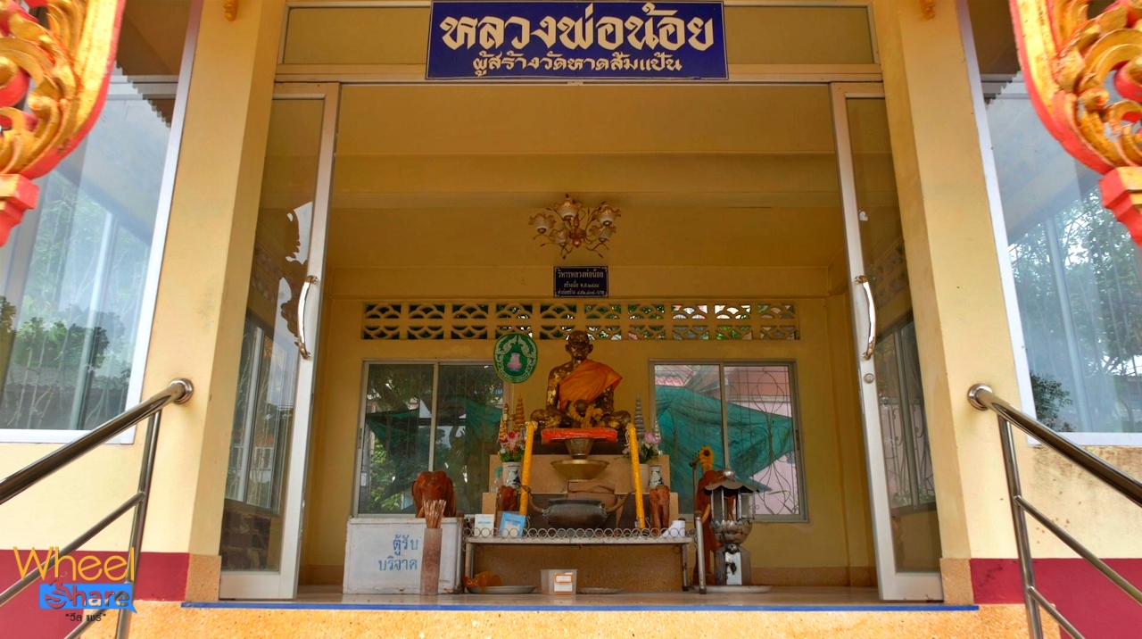 วัดหาดส้มแป้น เป็นวัดเก่าแก่และสำคัญของระนอง สร้างขึ้นมากว่า 100 ปี เป็นศูนย์รวมจิตใจของชาวบ้านในชุมชน ซ่อนตัวอยู่ในหุบเขาสีเขียว โอบล้อมด้วยภูเขาเขียวขจี ของตำบลหาดส้มแป้น ห่างจากตัวเมืองแค่ไม่กี่กิโล บรรยากาศรอบๆ วัดนี่ช่างร่มรื่นสุดๆ ต้นไม้ใหญ่ให้ร่มเงา สายธารไหลเอื่อยๆ ผ่านหน้าวัด และบางเช้าก็มีทะเลหมอกลอยต่ำๆ