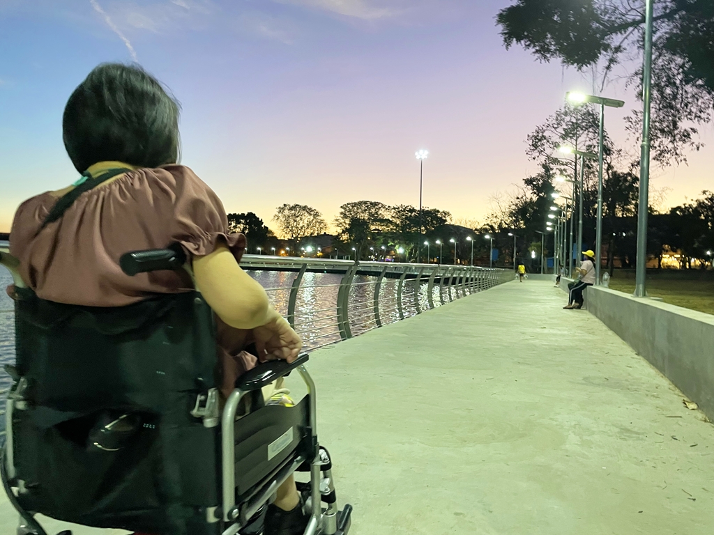 ♿️สำหรับวีลแชร์ มีทางลาดสำหรับวีลแชร์โดยรอบบึงแก่นนคร เป็นสถานที่พักผ่อนหย่อนใจ อากาศบริสุทธิ์ เหมาะสำหรับนักท่องเที่ยวอย่างเรา