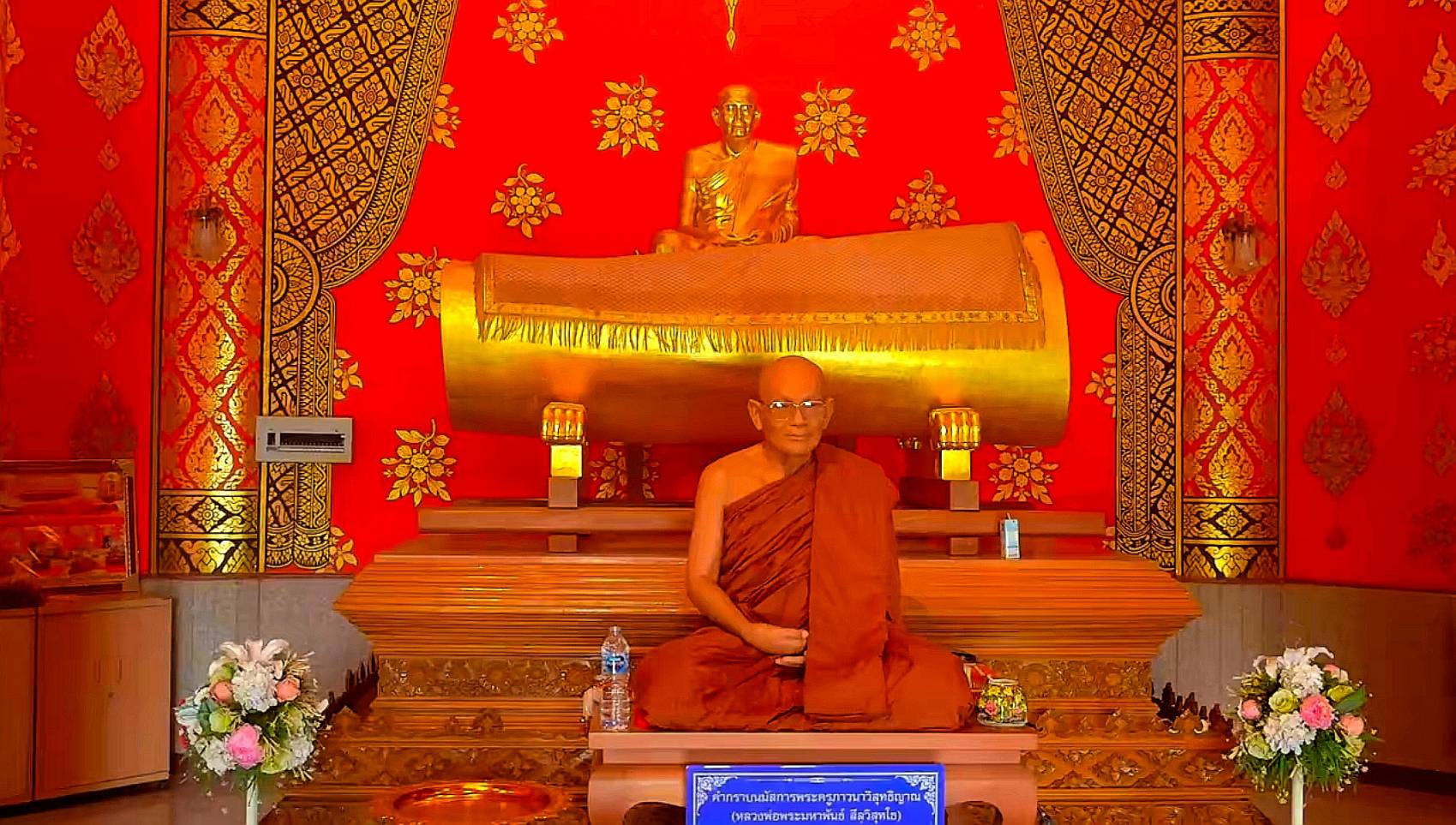 ด้านหลังเยื้องกับอุโบสถ เราแวะไปที่มณฑปพระครูภาวนาวิสุทธิญาณ เป็นมณฑปที่สร้างด้วยศิลาแลงเช่นกันค่ะ ภายในเป็นที่ตั้งหุ่นขี้ผึ้งของหลวงพ่อมหาพันธ์ สีลวิสุทโธ ซึ่งเป็นผู้ก่อตั้งวัดเนรมิตวิปัสสนา และหีบบรจุสังขารของหลวงพ่อซึ่งไม่เน่าเปื่อย เป็นที่เคารพบูชาของชาวจังหวัดเลย