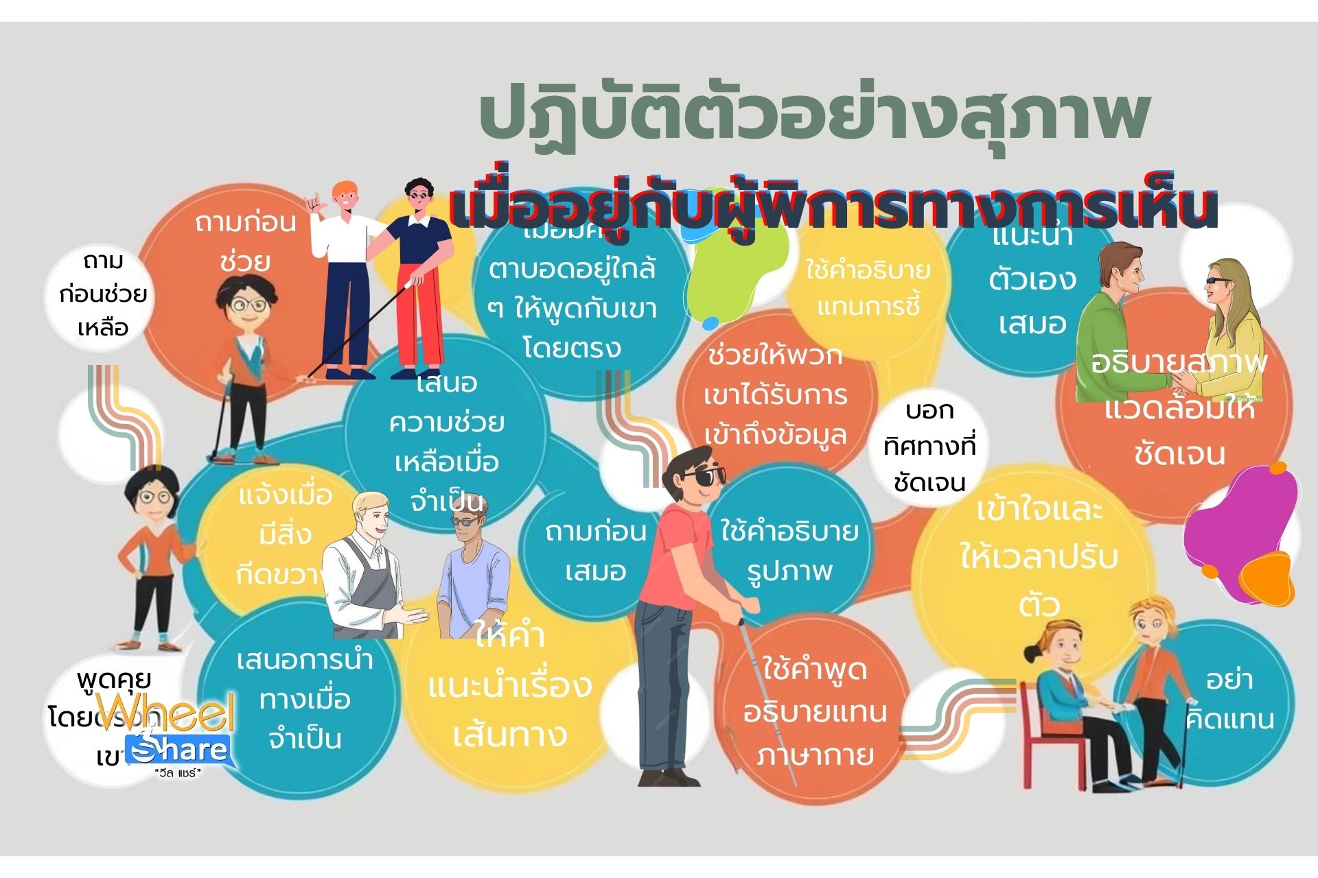 เมื่ออยู่กับผู้พิการทางการเห็น สิ่งที่สำคัญที่สุดคือการให้เกียรติ และปฏิบัติกับพวกเขาเหมือนบุคคลทั่วไป การถามก่อนช่วยเหลือ พูดคุยอย่างสุภาพ และใช้คำอธิบายภาพบนโซเชียลมีเดีย จะช่วยสร้างสังคมที่ครอบคลุมและเป็นมิตรกับทุกคนมากขึ้น
