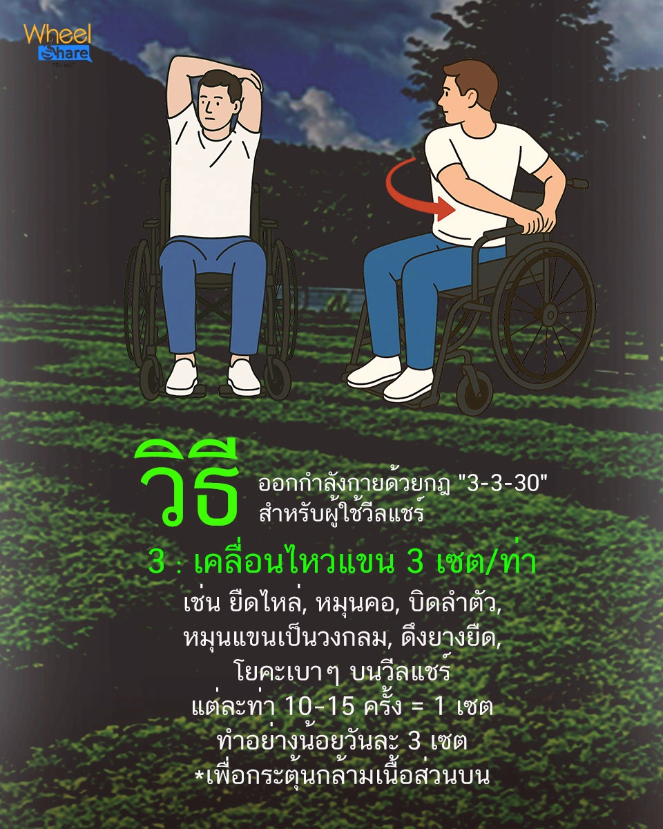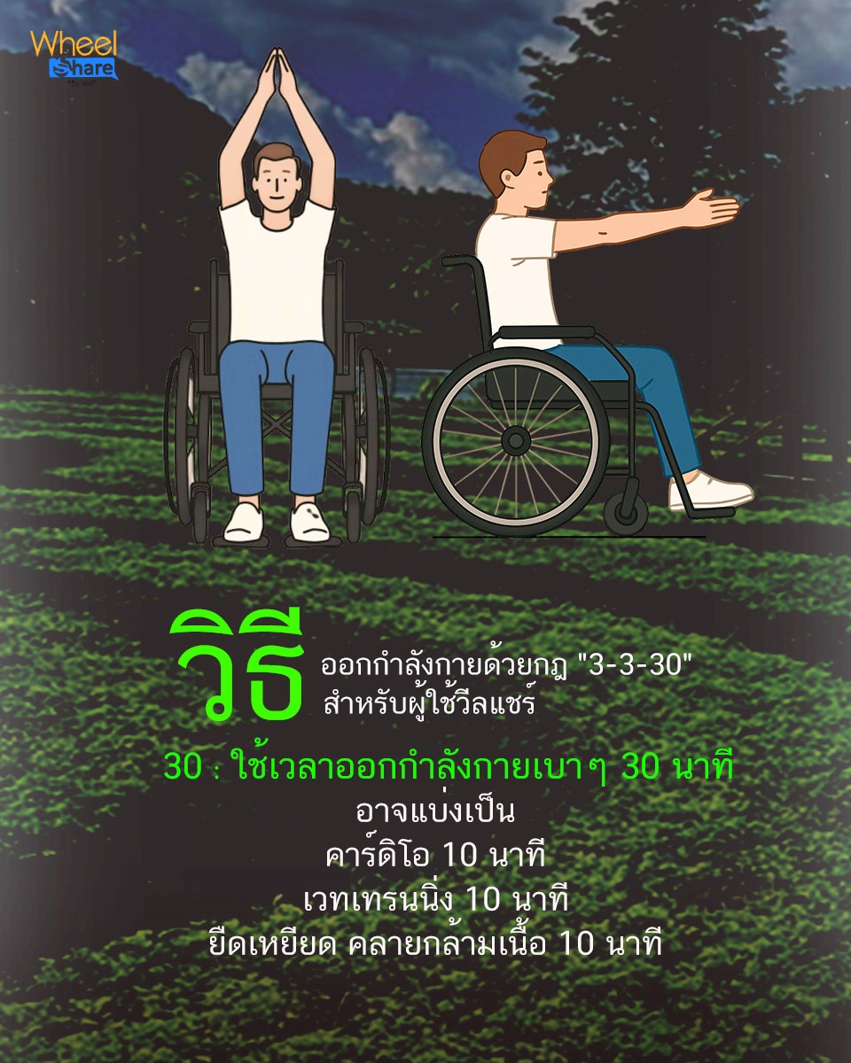 ซึ่งในกรณีนี้แอดปรับเปลี่ยนกฎ 3-3-30 ที่เหมาะกับผู้ใช้ "วีลแชร์" มาลองให้ชาว #WheelMyFan นำไปทำตามกัน เพราะแอดหวังว่าการมีร่างกายที่แข็งแรงจะช่วยเพิ่มความสดใส ทำให้ร่างกายแข็งแรง และลดโรคลดความเครียดไปได้ในท้ายที่สุด มาลองทำไปพร้อมๆ กันกับแอดนะ