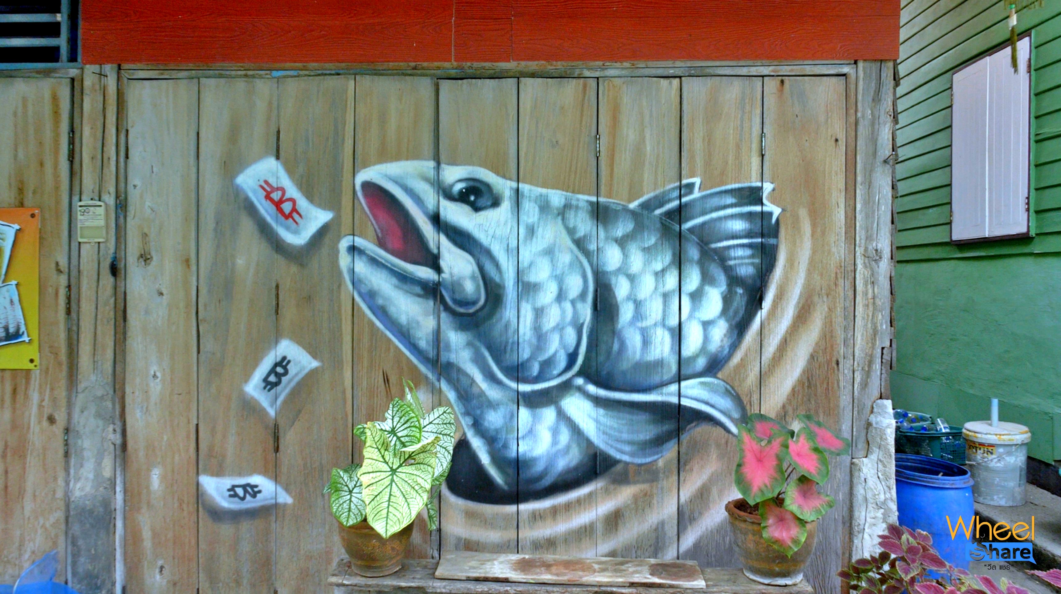 โดยตลอดทางเดินในชุมชนเกาะแรตจะเป็น “จิตรกรรมแนวสตรีทอาร์ตและกราฟิตี้สีสันสดใส” ทางเดินส่วนใหญ่นั้นเรียบ อาจจะมีบางจุดที่มีร่อง หรือไม่เรียบบ้างแต่ก็สามารถเข็นวีลแชร์ชมภาพวาดศิลปะตามผนังบ้านได้นะ ซึ่งมีภาพที่โดดเด่นอยุ่ด้วยกันทั้งหมด 8 จุดให้เราได้เช็คอิน ถ่ายรูปแบบอาร์ตๆ ซึ่งภาพวาดนั้นจะสะท้อนให้เห็นชีวิตวิถีชาวเล ของคนในเกาะแรตแห่งนี้ เช่น การทำประมง และของดีในชุมชน