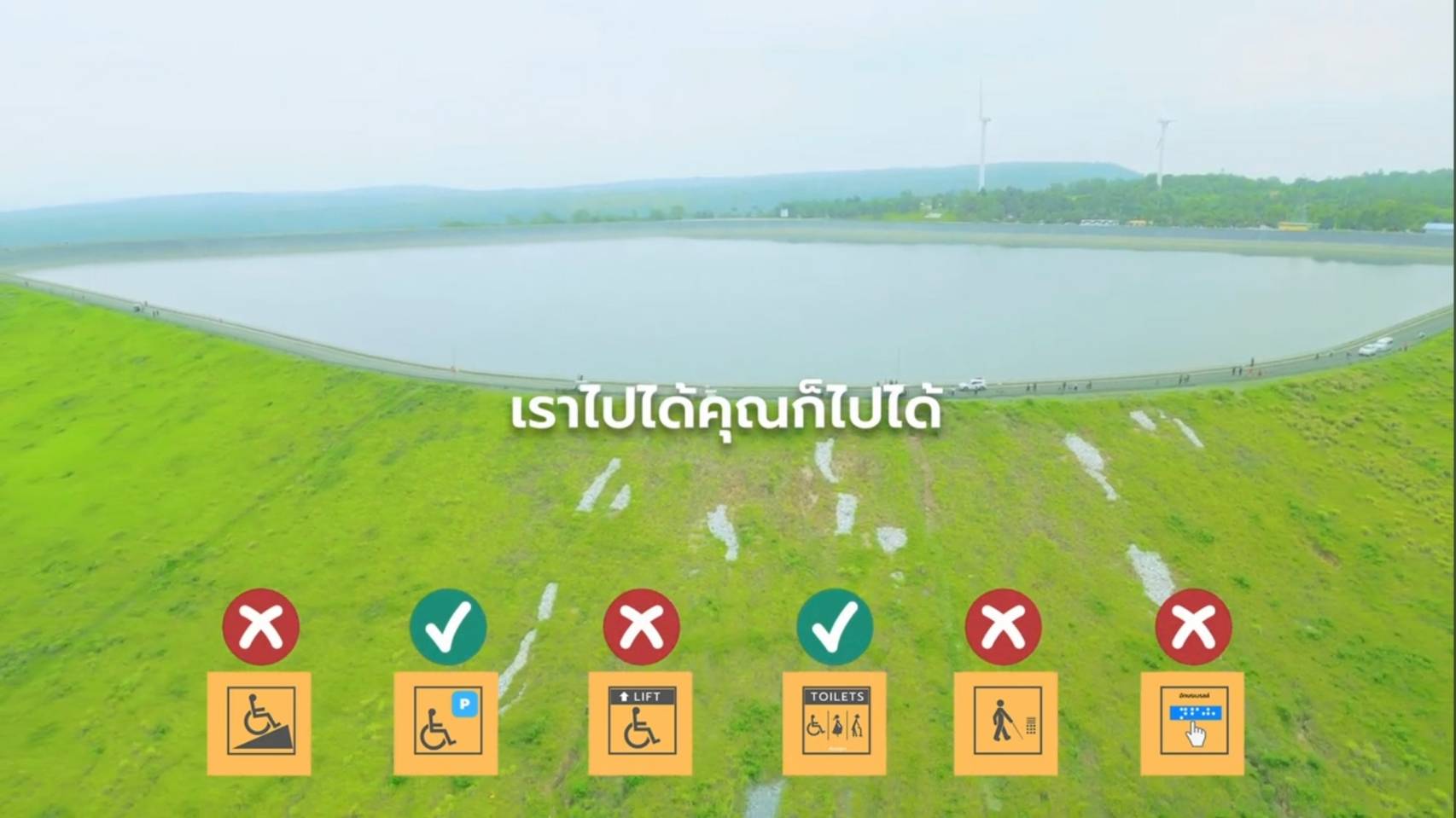 WheelShare แบ่งปันจากล้อหมุน ได้ไปสำรวจมาให้แล้วสำหรับคนพิการที่ใช้วีลแชร์ก็สะดวกนะ เพราะบริเวณจุดชมวิวเขายายเที่ยงเป็นทางเรียบสามารถได้รอบๆ ชมบรรยากาศกับวิวที่มองเห็นเขื่อนลำตะคลองที่มีภูเขาสลับกับกังหันลมขนาดยักษ์ เป็นวิวที่สวยสุดๆไปเลย อย่าลืมถ่ายรูปสวยๆมาอวดกันได้แล้วครับ