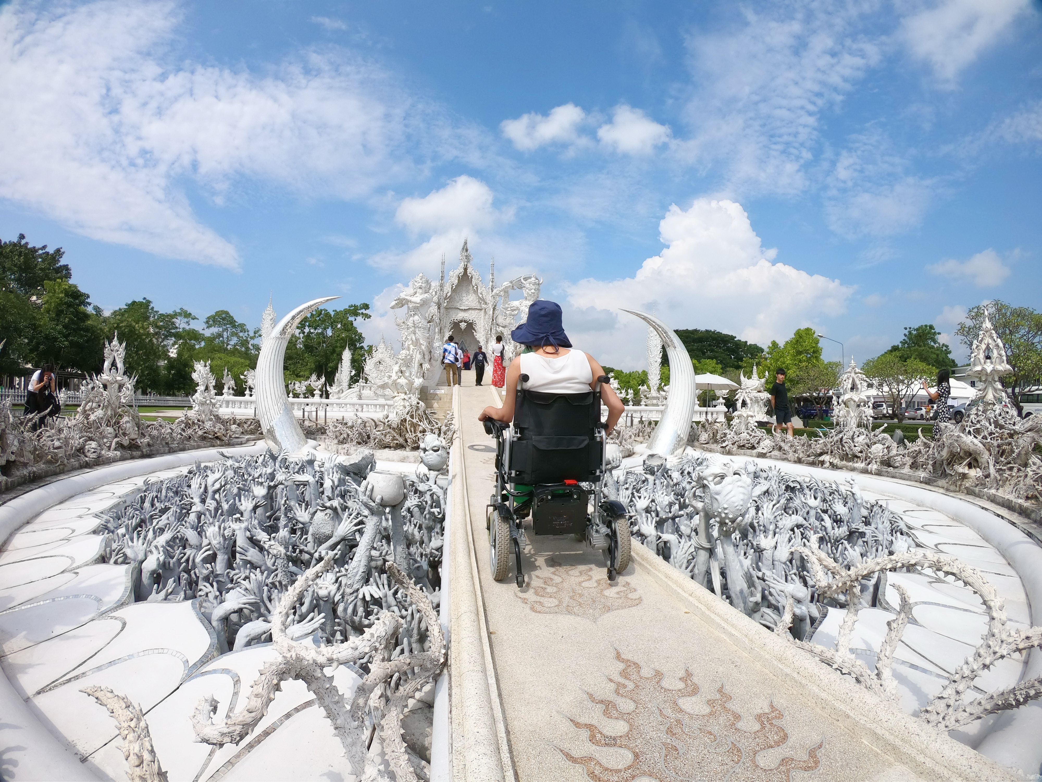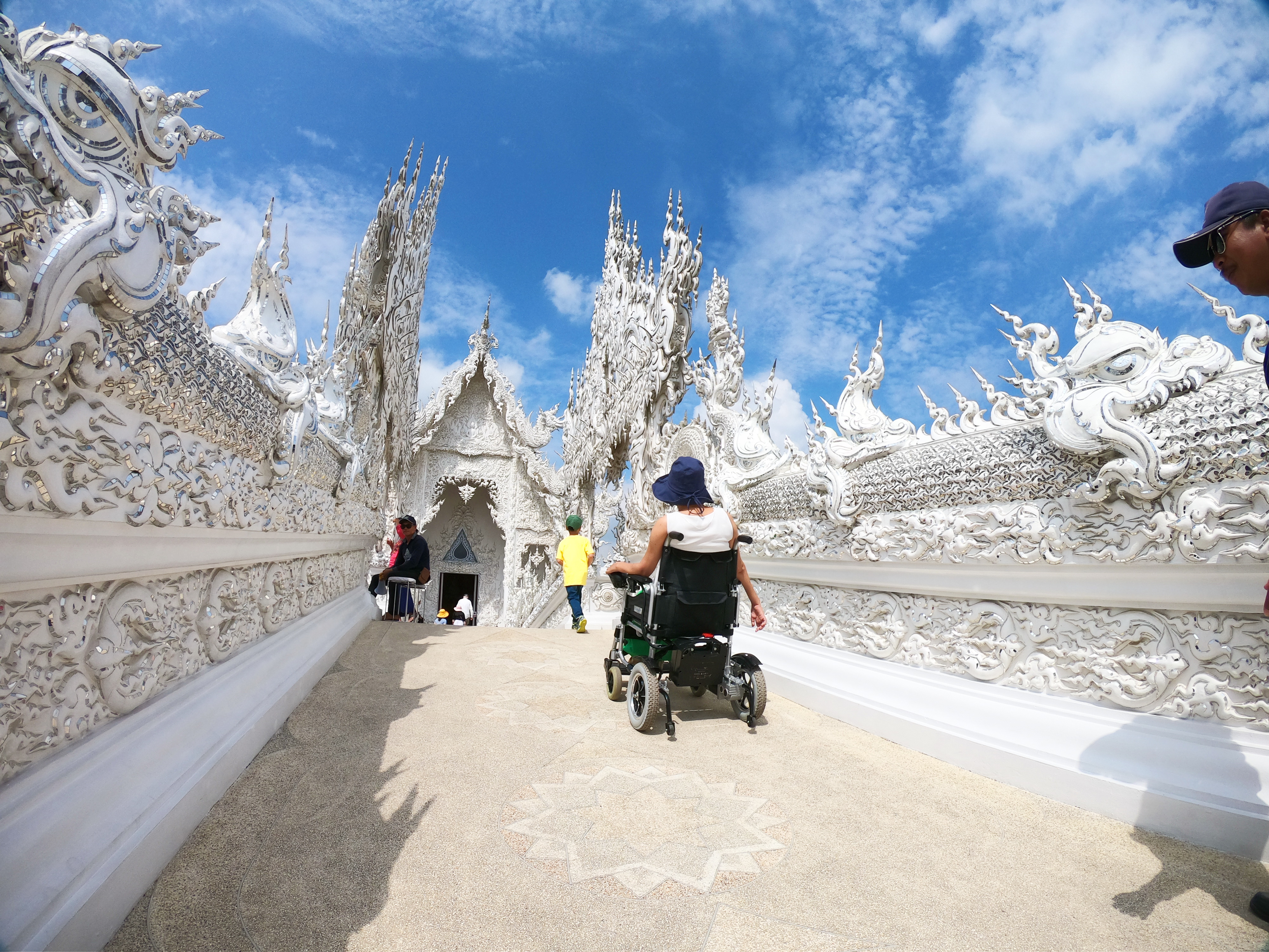 ♿สำหรับคนพิการที่นั่งรถวีลแชร์หรือผู้สูงอายุนั้น วัดร่องขุ่นได้รับการออกแบบให้สามารถรองรับผู้ใช้รถวีลแชร์ได้อย่างสะดวกสบาย โดยมีการจัดทำทางลาดในจุดเชื่อมต่อต่าง ๆ รวมถึงบริเวณพระอุโบสถ เพื่อให้ผู้พิการและผู้สูงอายุสามารถเข้าถึงพื้นที่โดยรอบได้อย่างง่ายดาย